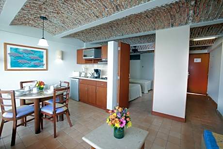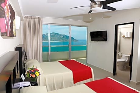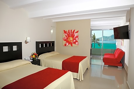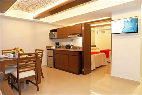 This air-conditioned studio features 2 double beds and a private terrace overlooking the ocean. It comes with Wi-Fi for a fee, cable TV and a private bathroom. The kitchenette includes a blender, coffee maker toaster and fridge.