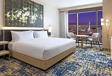 Located across from the Convention Center in the heart of Las Vegas Strip, Las Vegas Hilton At Resorts World offers a pool with city views. The accommodations offers a 24-hour front desk and room service for guests. The property offers a variety of cuisines and bars. Guests can aslo enjoy retail shops, salon, barbershop and a cigar lounge. The nearest airport is Harry Reid International Airport, 3.7 mi from the accommodations.