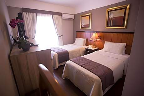 Las Ventanas Suites Hotel offers top-notch services and amenities, ensuring guests experience utmost comfort.Share your photos and respond to emails at your convenience, thanks to the free Wi-Fi internet access offered by hotel.Should you require transportation to or from the airport, hotel is able to organize it prior to your arrival date.Services offered by car hire and shuttle at the hotel ensure effortless exploration of Ciudad del este.Visitors can take advantage of complimentary parking directly at the hotel.Reception services such as concierge service, luggage storage and safety deposit boxes are available to accommodate your requirements. Securing top-notch tickets and snagging sought-after dining reservations become effortless, thanks to the hotel's ticket service and tours. Traveling with minimal baggage is achievable at Las Ventanas Suites Hotel, as the hotel's dry cleaning service and laundry service ensures your garments stay fresh. Room amenities like room service and daily housekeeping contribute to making a perfect selection for your stay. The hotel maintains a completely smoke-free zone, providing a breathable atmosphere. Smoking is limited to specified smoking zones. Each accommodation at Las Ventanas Suites Hotel is thoughtfully created and adorned to provide visitors with a comfortable, home-like atmosphere.In select rooms of the hotel, guests can enjoy the advantage of having linen service available for their convenience.At Las Ventanas Suites Hotel, the uniquely tailored rooms provide a configuration choice resembling a balcony or terrace. In select rooms, guests at the hotel can enjoy top-notch in-room entertainment with television and cable TV available for their convenience. Rest assured, in a few chosen rooms, you will find the convenience of a coffee or tea maker and mini bar at your disposal.Maintain your cleanliness and comfort using a hair dryer and toiletries available in select guest restrooms. Immerse yourself in the executive lounge, where exceptional amenities and lavish surroundings await you. Begin your holiday on a high note. At Las Ventanas Suites Hotel, your mornings are greeted with a delightful, free breakfast.Should you prefer not to venture out for a meal, the enticing culinary choices at hotel are always available for your satisfaction. Experience an unforgettable evening with your fellow travelers just a short distance away, at hotel's bar.Las Ventanas Suites Hotel provides a superb assortment of leisure amenities for guests to enjoy. Each day at hotel, immerse yourself in the invigorating waters of the pool, perfect for a rejuvenating plunge or a series of revitalizing laps.For individuals who don't want to skip their exercise routine, visiting the hotel fitness center ensures you maintain your vitality and wellness.