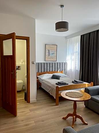 Lazur is conveniently and picturesquely located just over seaside promenade in Sarbinowo and a few steps from the sandy beach. Free WiFi access is available throughout the property. Every unit will provide you with a satellite TV, a refrigerator and an electric kettle. Private bathroom comes with a shower. Some units boast a terrace or a balcony. Suites and studios are fitted with an equipped kitchenete. At Lazur you will find barbecue facilities. An array of activities can be enjoyed in the surroundings, including cycling, horse riding and hiking. Shuttle services can be provided at a surcharge. Children's high chair can be arranged upon request. It is 4.7 mi to the Lighthouse in Gąski. Koszalin can be reached in a 20-minute drive.