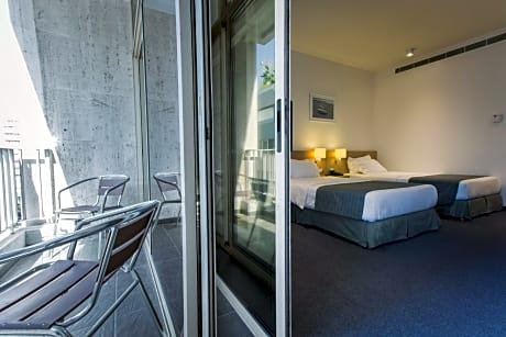 With a spacious living area and an outside terrace, the Two-bedroom Suite offers spacious accommodations perfect for families. One bedroom has a King sized bed while the other room has 2 twin beds. The spacious bathroom offers a walk in shower and complimentary toiletries.