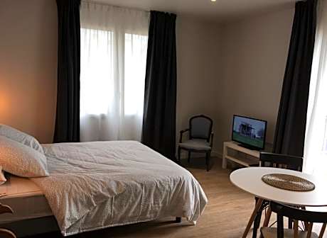 Le Clos Des Thermes De Jonzac offers accommodations in Jonzac, 29 miles from Saintes Train Station and 28 miles from Saint Pierre Cathedral. This condo hotel features free private parking and bicycle parking. Featuring a private entrance, the condo hotel allows guests their privacy. The air-conditioned units have a fully equipped kitchen with dining area, an oven, kettle, and a microwave. Rooms include a coffee machine, a private bathroom, and free Wifi, while selected rooms also boast a terrace and some have garden views. At the condo hotel, units include a wardrobe and a flat-screen TV. Guests at the condo hotel can enjoy cycling and hiking nearby, or make the most of the garden. Abbaye aux Dames is 29 miles from Le Clos Des Thermes De Jonzac, while Cognac Golf Course is 24 miles from the property. Bordeaux–Mérignac Airport is 59 miles away.