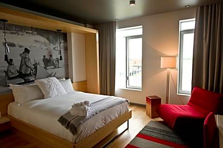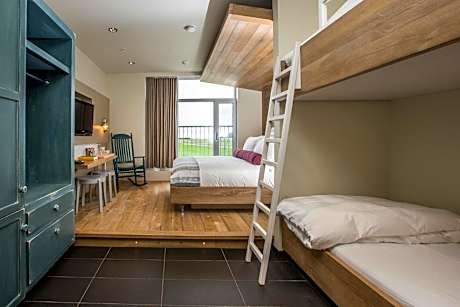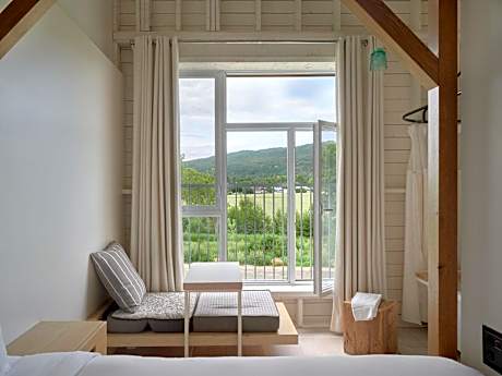 This hotel in the heart of Baie-Saint-Paul features modern, uniquely decorated rooms. Inspired by historic farm buildings, this 5-pavillion complex offers an on-site restaurant, spa and concierge service. Light wood floors, contemporary furnishings and colorful accents are among decorative features in rooms. Each room at Hôtel et Spa Le Germain Charlevoix is equipped with a flat-screen TV, Nespresso coffee machine, bathrobes and heated bathroom floors. Showcasing regional cuisine, Restaurant Les Labors provides on-site dining options in the Main Building. A fireside bar and farmers’ market (in summer only) are also housed in this building at Hôtel et Spa Le Germain Charlevoix. The on-site Massif de Charlevoix train station allows guests to explore Charlevoix’s scenery and gastronomy during the summer. Le Massif ski mountain is accessible about 12 mi away. An array of activities can be enjoyed on site all year-round. A games room is available on rainy days.