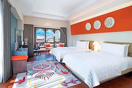 Offering an indoor swimming pool, a spa and wellness center and a fitness center, Le Méridien Thimphu is located in Thimphu. The Memorial Chorten is 1640 feet and the National Library & Archives of Bhutan and the National Institute for Zorig Chusum are within 1.1 mi. Each air-conditioned room here will provide you with a mini-bar and a seating area. Featuring a bath or shower, private bathroom also comes with a hairdryer and bathrobes. You can enjoy mountain view from the room. At Le Méridien Thimphu, airport shuttle is provided at an additional charge. Other facilities offered at the property include luggage storage and shops (on site). The property offers free parking. The Buddha Dordenma is 3.2 mi, the Simtokha Dzong is 3.7 mi and the Phajoding Monastery is 4.5 mi. The Dochula Pass is 14 mi. The Paro International Airport is 32 mi. Guests can enjoy carefully curated fare at Latest Recipe, Sese Shamu, the only Pan Asian restaurant in Thimphu and Latitude 27.