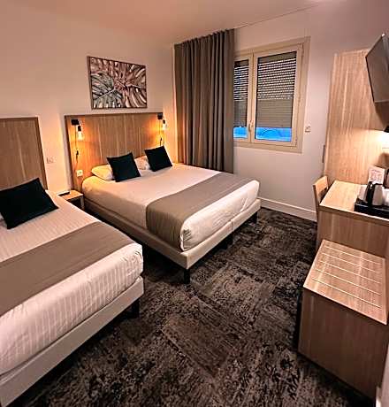 Located in Châteaubernard, 18 miles from Saintes Train Station, Logis Le Passiflore Cognac has accommodations with a seasonal outdoor swimming pool, free private parking, a garden and a terrace. This 3-star hotel features free WiFi and a bar. Cognac Golf Course is 3.8 miles away and Saintes Golf is 19 miles from the hotel. The hotel will provide guests with air-conditioned rooms with a desk, an electric tea pot, a fridge, a minibar, a safety deposit box, a flat-screen TV and a private bathroom with a shower. All rooms have a closet. Logis Le Passiflore Cognac offers a buffet or continental breakfast. Abbaye aux Dames is 18 miles from the accommodation, while Saint Pierre Cathedral is 18 miles from the property. La Rochelle - Île de Ré Airport is 68 miles away.