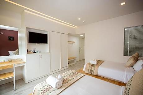 Providing free toiletries, this triple room includes a private bathroom with a shower, a hairdryer and slippers. The air-conditioned triple room provides a flat-screen TV with cable channels, a tea and coffee maker, a safe deposit box, a tiled floor as well as city views. The unit offers 2 beds.