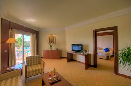 This paradisiacal hotel is located on the Mediterranean beach of Yasmine Hammamet, next to the marina and close to tourist spots. Hammamet's Medina is roughly 30 minutes away. Guests staying at this magnificent complex can swim in either one of the four outdoor pools, sunbathe at the lounge area, have a drink at the poolside snack bar or enjoy the fine sand beach. It is a perfect holiday destination for families. The hotel offers plenty of activities for both adults and children. The hotel proposes lots of activities for sport lovers, and the beautiful golf courses of Yasmine and Citrus are within easy reach. The hotel spa offers a wide range of treatments and massages. The complex features four restaurants and two snack bars, where guests can taste regional delicacies, try the best Mediterranean seafood, delicious Italian cuisine or enjoy a drink by the sea.