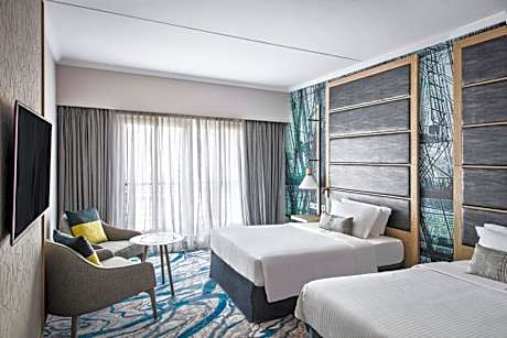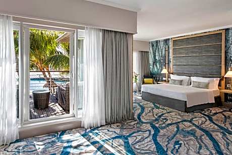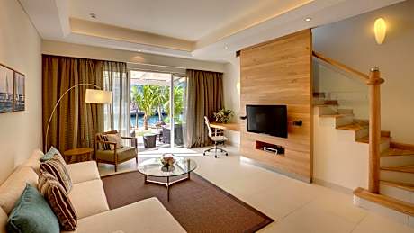 Overlooking the vibrant Port Louis Waterfront, Le Suffren Hotel & Marina, combines the practical comfort of a business hotel with the enjoyment of a resort, all in close proximity to the business district, the historic city center and Cybercity. It is conveniently close to convention centers, embassies, cultural sites, as well as various attractions including shops, craft markets, restaurants, museums, and the Oceanarium. A complimentary water taxi shuttle is available 7/7. Decorated with a nautical feel, all air-conditioned rooms are equipped with 49” LED Screen TV, private private bathroom with separate bathtub, writing desk and complimentary tea & coffee making facilities. For longer stays, Le Suffren provides modern serviced duplex apartments that offers the freedom and comfort of home, along with the comprehensive services and leisure amenities of a 4-star hotel. Le Suffren features an exciting range of restaurants from fresh seafood and international cuisine with live cooking and interactive food library displays at Pomme de Mât, to an authentic Sushi and Oyster bar. A visit at the Pink Socks Seafront Bar with lounge music, lively conversations and the clink of cocktails crafted by our mixologist is a must! To unwind, guests can indulge in a wellness retreat at the Fitness & Wellness club, offering a state-of-the-art gym, a variety of spa treatments, a hammam, hydro pool, man-made beach along the marina, squash court, outdoor swimming pool, or embark on a catamaran cruise departing from the hotel's doorstep. The hotel is located 27 mi from SRR International Airport, with airport transfers available for a surcharge.