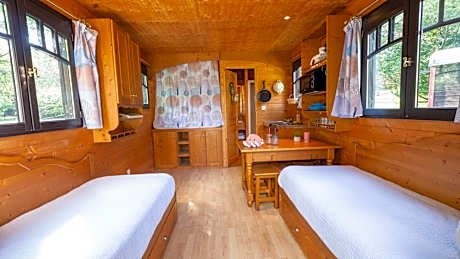Surrounded by lakes and forests, this luxury campground offers accommodations in Chamberet. It is set in an orchard, and features a covered heated pool and a sauna. Guests can stay in wooden caravans, house boats or wooden pods. Each unit Les Roulottes Des Monédières has a balcony or an outdoor area. The wooden caravans and the house boats have a private bathroom and an equipped kitchenette, which includes a fridge and a coffee maker. Guests can relax in the tea garden, or on the deckchairs by the swimming pool. There is also a fitness center. Many activities are available at Les Roulottes, including basketball, bowls and children’s activities. Bike rental is also provided and free Wi-Fi is available in the common areas. Les Roulottes Des Monédières is located in the Corrèze region. Limoges is a 40-minute drive away and Brive-la-Gaillarde is 37 mi away.