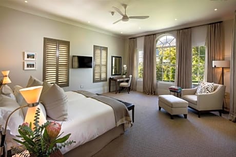 Nestled between the mountains and a river within the picturesque Franschhoek valley, Leeu Estates is located on 100 hectares of vineyards, landscaped gardens and fynbos. The luxury estate features a spa and outdoor pool. The elegant, spacious rooms and suites are either located at the refurbished 19th-century Manor House or around the estate among gardens, oak trees and vineyards. Each comes with air conditioning, a flat-screen TV and tea-and-coffee making facilities. Guests can relax at the pool, work out in the fitness center or get pampered at Leeu Spa. There is also a library at the old Manor House. An array of activities is offered in the area, such as cycling and hiking. The hotel also offers free use of bicycles and car hire can be arranged. Franschhoek Monument is 1.3 mi from Leeu Estates and the nearest airport is Cape Town International Airport, 29 mi away.