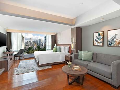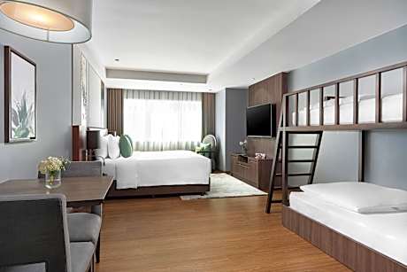 Great care is taken to ensure guests experience comfort through top-notch services and amenities.Remain linked during your visit by utilizing the complimentary internet access available. Prior to your check-in date, you can arrange airport transportation services, guaranteeing a seamless and efficient experience for both arrival and departure. Experience the wonders of Bangkok with ease by utilizing the services provided at taxi. The hotel offers complimentary parking for guests who arrive with their own mode of transport. Effortlessly plan your daily activities and travel requirements with concierge service, luggage storage and safety deposit boxes provided by the front desk services. Securing top-notch tickets and reserving prime dining spots become effortless through assistance from the hotel's tours.For extended visits or whenever required, the dry cleaning service and laundry service ensures your preferred travel garments remain clean and accessible. During leisurely days and evenings, in-room amenities such as room service and daily housekeeping enable you to maximize your stay in the room.The hotel is completely smoke-free.In limited designated zones, smoking is exclusively permitted. Crafted for coziness, every guestroom provides an array of features, guaranteeing a tranquil night's sleep while maintaining the level of comfort.For a more enjoyable stay, select rooms at hotel are equipped with blackout curtains and air conditioning.Expand your in-room entertainment choices with various amenities, such as television offered in certain accommodations.Rest assured that your hydration needs will be met, as some guestrooms are equipped with a refrigerator and mini bar. Maintain your cleanliness and comfort using a hair dryer, toiletries and towels available in select guest restrooms. Each morning at Novotel Living Bangkok Sukhumvit Legacy, a scrumptious, homemade breakfast kick-starts the day. Begin your holiday mornings right with your essential cup of coffee, offered daily at the cafe on-site. During your visit, indulge in a range of delightful culinary choices at hotel to enhance your experience. Experience unparalleled comfort as groceries can be brought right to your room at Novotel Living Bangkok Sukhumvit Legacy through their distinctive delivery assistance.Indulge in the numerous pursuits available at Novotel Living Bangkok Sukhumvit Legacy. Begin your holiday perfectly by taking a plunge into the swimming pool. At the hotel, enjoy a laid-back beverage experience by the poolside bar, sipping on a soothing cocktail. Eliminate those holiday calories by stopping by hotel and making use of their well-equipped exercise amenities.