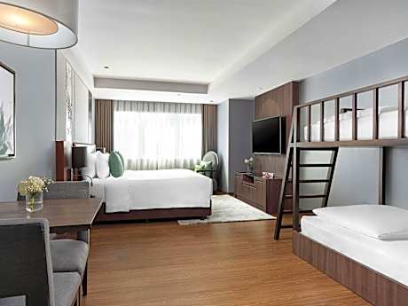 Great care is taken to ensure guests experience comfort through top-notch services and amenities. Remain linked during your visit by utilizing the complimentary internet access available. Prior to your check-in date, you can arrange airport transportation services, guaranteeing a seamless and efficient experience for both arrival and departure.Experience the wonders of Bangkok with ease by utilizing the services provided at taxi. The hotel offers complimentary parking for guests who arrive with their own mode of transport.Effortlessly plan your daily activities and travel requirements with concierge service, luggage storage and safety deposit boxes provided by the front desk services.Securing top-notch tickets and reserving prime dining spots become effortless through assistance from the hotel's tours. For extended visits or whenever required, the dry cleaning service and laundry service ensures your preferred travel garments remain clean and accessible. During leisurely days and evenings, in-room amenities such as room service and daily housekeeping enable you to maximize your stay in the room. The hotel is completely smoke-free. In limited designated zones, smoking is exclusively permitted.Crafted for coziness, every guestroom provides an array of features, guaranteeing a tranquil night's sleep while maintaining the level of comfort. For a more enjoyable stay, select rooms at hotel are equipped with linen service, blackout curtains and air conditioning. At Novotel Living Bangkok Sukhumvit Legacy, a selection of rooms can be found that showcase unique design elements such as a separate living room.For certain chosen rooms, guests can enjoy in-room amusement like daily newspaper, television and cable TV as a part of their stay.Rest assured that your hydration needs will be met, as some guestrooms are equipped with a refrigerator, bottled water and mini bar. Maintain your cleanliness and comfort using a hair dryer, toiletries, bathrobes and towels available in select guest restrooms. Each morning at Novotel Living Bangkok Sukhumvit Legacy, a scrumptious, homemade breakfast kick-starts the day.Begin your holiday mornings right with your essential cup of coffee, offered daily at the cafe on-site.During your visit, indulge in a range of delightful culinary choices at hotel to enhance your experience. Experience unparalleled comfort as groceries can be brought right to your room at Novotel Living Bangkok Sukhumvit Legacy through their distinctive delivery assistance. Indulge in the numerous pursuits available at Novotel Living Bangkok Sukhumvit Legacy. Begin your holiday perfectly by taking a plunge into the swimming pool.At the hotel, enjoy a laid-back beverage experience by the poolside bar, sipping on a soothing cocktail. Eliminate those holiday calories by stopping by hotel and making use of their well-equipped exercise amenities.