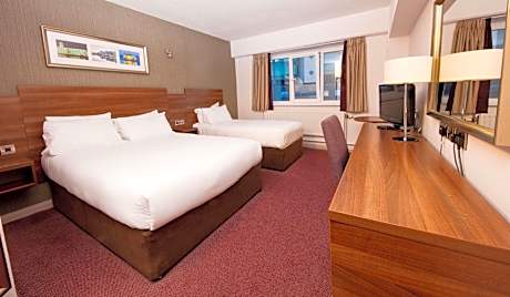 Leonardo Hotel Cork - Formerly Jurys Inn, is located on Anderson’s Quay overlooking the River Lee. Leonardo Hotel Cork is a 5-minute walk from Kent Station and offers a bar, restaurant, and 24-hour reception. The rooms at Leonardo Hotel Cork are modern and spacious with a DREAM bed, a flats-screen TV with freeview, spa toiletries, and spacious bathrooms. There is a workspace area and tea and coffee-making facilities. Buffet breakfast is available at the property. The contemporary restaurant offers an international dinner menu. The bar serves lunch, snacks and coffee. Leonardo Hotel Cork - Formerly Jurys Inn is a 5-minute walk from the Merchants Quay Shopping Center and the main shopping area of St. Patrick’s Street. The English Market, The Boardwalk, and Shandon Steeple are both within a 10-minute walk from the hotel. There is On-Site Parking available however there are a limited number of spaces available on a first-come, first-served basis at €12 per stay.