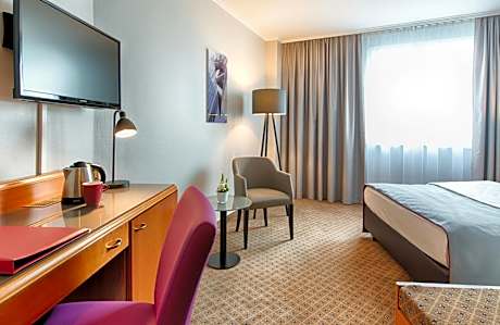 Just a 2-minute walk from Düsseldorf Train Station, this 4-star hotel offers modern rooms with Wi-Fi internet, elegant wellness facilities, and underground parking. Just a 5-minute underground journey from the Königsallee shopping street, the Leonardo Hotel Düsseldorf City Center has air-conditioned rooms with a 32-inch flat-screen HD TV, and a work desk. Wellness facilities at the Leonardo Hotel Düsseldorf City Center include a sauna and fitness area. An American-style breakfast buffet is served each morning. There is also a Continental breakfast option. Ludwig's Restaurant offers regional and international food. Snacks and a variety of drinks are available in Erhard's Bar. The Capitol Musical Theater is within a 10-minute walk of the Leonardo Hotel Düsseldorf City Center.