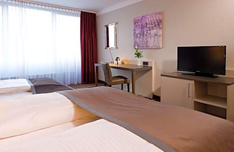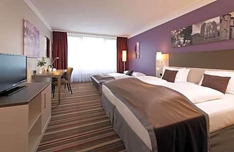 This hotel is a few minutes' drive from Mönchengladbach Train Station and a 30-minute drive from the Düsseldorf Exhibition Center. It offers fine cuisine and quick motorway access. The Leonardo Hotel Mönchengladbach provides modern rooms with air conditioning, free Wi-Fi, a fitness room and a sauna. Some of the rooms have a mini-bar. The Leonardo Hotel Mönchengladbach restaurant and bar are also great places to relax after a long day's sightseeing or business activities. The Benedictine Abbey is a few steps away. Football fans are just 2.5 mi from the Borussia Stadium.