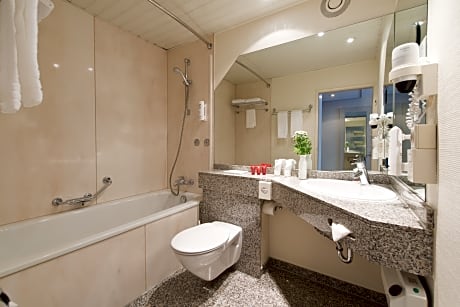 This hotel is a few minutes' drive from Mönchengladbach Train Station and a 30-minute drive from the Düsseldorf Exhibition Center. It offers fine cuisine and quick motorway access. The Leonardo Hotel Mönchengladbach provides modern rooms with air conditioning, free Wi-Fi, a fitness room and a sauna. Some of the rooms have a mini-bar. The Leonardo Hotel Mönchengladbach restaurant and bar are also great places to relax after a long day's sightseeing or business activities. The Benedictine Abbey is a few steps away. Football fans are just 2.5 mi from the Borussia Stadium.