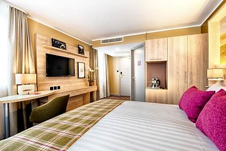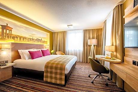 In Edinburgh city center, less than 1640 feet from Haymarket Rail Station, the Leonardo Royal Hotel Edinburgh offers great value, with modern family-friendly rooms with attached bathroom and a restaurant-bar. Spacious, stylish rooms at the Leonardo Royal Hotel Edinburgh each include a flat-screen TV with satellite channels, a work area, tea/coffee facilities and a private bathroom. Princes Street’s shops and bars and Princes Street Gardens with the famous Edinburgh Castle are all just a 10-minute walk from the hotel. Rosslyn Chapel can be reached via a local bus service. The Edinburgh International Conference Center (EICC) is only 984 feet away. We are offering a full buffet breakfast. The Bar and Grill at Leonardo's offers all-day dining with an extensive grill section alongside burgers, pizzas, salads, sandwiches. Leonardo Hotel Aberdeen serves illy coffee – illy is an iconic, family-run, Italian coffee brand.