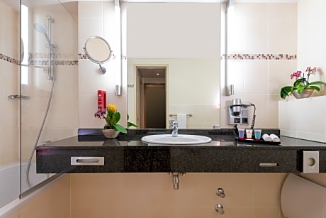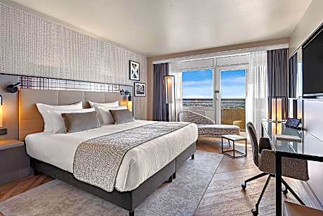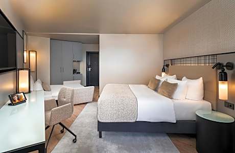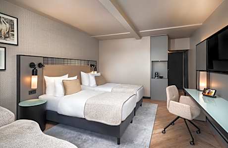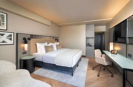 Boasting a central location in the lively Sachsenhausen district of Frankfurt, this striking skyscraper hotel offers a high level of comfort together with magnificent views of the city’s skyline. Recently renovated in 2024, the Leonardo Royal Hotel Frankfurt provides ideal accommodations for guests visiting Frankfurt on a city break, business trip or trade exhibition. There are 480 indoor parking spaces, available for a fee. The hotel lies just a 20-minute journey from Frankfurt’s international airport. The main shopping areas and cultural attractions are easy to reach by car or public transport from here, as is the Frankfurt Messe (trade fair center). Guests are invited to enjoy a hearty breakfast in the Vitruv restauarant, where tables can also be booked for lunch and evening meals. The bistro Leo Lounge offers snacks, desserts and cocktails, while the Leo Sportsbar serves seasonal, rustic dishes alongside a range of beers. Make use of the various sports and spa facilities on site, or explore the countless bars and discotheques in the surrounding Sachsenhausen area. Wireless internet access is available for an additional charge throughout the building.