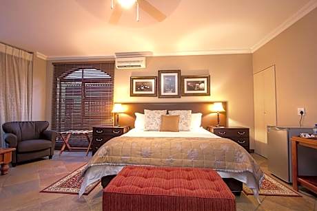Offering luxurious accommodations in Centurion, Leopardsong Manor is on a golf estate and provides guests with upmarket accommodations near Centurion's business district, as well as greater Pretoria. The property offers free WiFi access. The spacious guest rooms at Leopardsong are stylishly decorated with a colonial theme. Each room is air-conditioned and equipped with a ceiling fan and a Nespresso coffee machine. The rooms have an private bathroom, and free toiletries are provided for your comfort. Lunch and dinner can be requested, and guests can dine outside on the covered terrace while enjoying views of the golf course, or inside next to the fireplace. Guests can go for a relaxing walk around the property, or keep active with a round of golf or tennis. Leopardsong is only 328 feet away from the nearest Gautrain bus stop and 2.5 mi away from the Centurion Station. Pretoria is 16 mi away. Kindly note that photoshoots are unfortunately not permitted at the property.