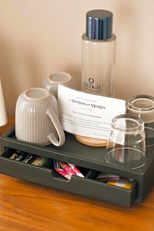 The hotel restaurant Logis Hôtel et Restaurant La Pension du Moulin, formerly known as Les Ajoncs d’Or, welcomes you all year round, 7 days a week, in a cozy and warm setting in the center of Pont Aven. Completely renovated, our 24 charming rooms welcome you in a contemporary and refined decor. For your breakfast, the buffet has a wide choice to satisfy all your desires and start the day off on the right foot. The restaurant offers you refined traditional French cuisine which draws its inspiration from the treasures of the local terroir while respecting the seasonality of the products. Adjoining the hotel, the Les Nabis bar allows you to take a break in the dining room or on the terrace to quench your thirst or eat.