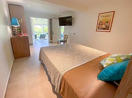 Les Hauts du Cap - Guest House features a hot tub and air-conditioned accommodations in Le François. There's a private entrance at the guest house for the convenience of those who stay. The guest house offers parking on-site, an outdoor swimming pool, and private check-in and check-out. At the guest house, units have a desk, a flat-screen TV, a private bathroom, bed linen, and towels. Rooms have a coffee machine, while some rooms also boast a fully equipped kitchen with a dishwasher, an oven, and a stovetop. Buffet and continental breakfast options with fruit, juice, and cheese are available. The guest house has a picnic area where you can spend the day outdoors. Martinique Aime Cesaire International Airport is 12 miles from the property.