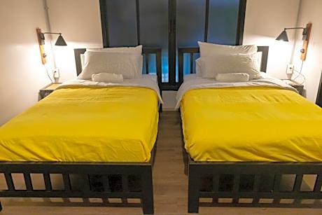 This air-conditioned dormitory room has a shared bathroom, a seating area, parquet floors as well as a patio. The unit has 4 beds.
