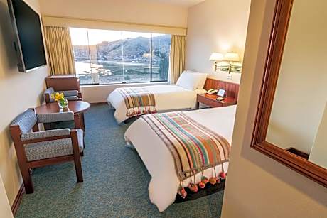 Located on Esteves Island, this 5-star hotel offers panoramic views over Lake Titicaca from the Andes to Bolivia. It features a spa with a hot tub and sauna and free Wi-Fi connection. "A Sunset Experience on the shores of Lake Titicaca". The elegant rooms of the Libertador Lake Titicaca are spacious and all have lake views. They include a private bathroom, a TV and a mini-bar. Guests can enjoy a fusion of Andean and international cuisine at the Los Uros restaurant. Libertador Lake Titicaca comprehensively includes a gym with cardio-fitness activities and a selection of shops. Linked by a bridge to the mainland, central Puno is just five minutes away by car from the hotel. Juliaca’s Manco Cápac International Airport is 45 minutes. Guests can benefit from free public parking.