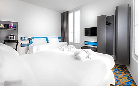 Libertel Montmartre Opéra is located in northern Paris, just 984 feet from the Moulin Rouge and a 15-minute walk from Sacré-Coeur. It is just a 5-minute walk from Pigalle Metro Station providing direct access to the city center and a 20-minute walk from Opéra Garnier. The guest rooms at Libertel Opéra are air-conditioned and feature an LCD TV with satellite and cable channels. Each has tea and coffee making facilities as well as a small bottle of water and a private bathroom with amenities. The hotel serves a buffet breakfast in the breakfast room. Fresh croissants, fruit juice and a selection of cheeses are just a few of the delicacies on offer. A vending machine offers drinks in the reception. The 24-hour reception is open to advise guests on their visit to Paris and sights such as the Arc de Triomphe, a 15-minute metro ride away. Charles de Gaulle Airport is a 25-minute drive away.
