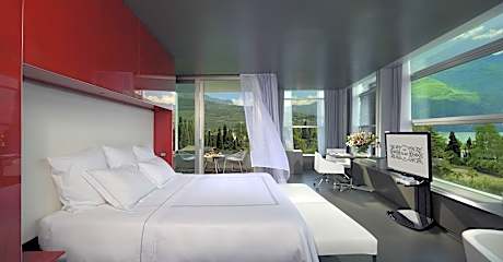 Offering a state-of-the-art 4.9 ft² wellness and spa center with indoor and outdoor pools, the 5-star Lido Palace - The Leading Hotels of the World is in Riva Del Garda, right next to Lake Garda. Set in a Belle Epoque building from the early 20th-century, all rooms at Lido Palace come with high design black and gray décor, along with a wall-mounted 42" LCD TV. You also have free WiFi, an extra-large bed and a modern bathroom with underfloor heating and exclusive toiletry set. The Lido Palace hotel features a wellness and spa center complete with a sauna, Turkish bath and a fully equipped fitness center. The main restaurant serves traditional Mediterranean cuisine. Another, more intimate one, offers à la carte menus based on fish specialties. Offering free parking, the hotel is a 20-minute drive from the A22 motorway. Trento can be reached by car in 40 minutes.