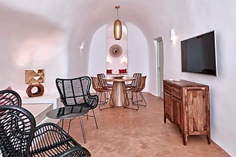 Opened in summer 2018, Limestone luxury suites is set on the cliff of the caldera and is located at a historic and quiet neighborhood, with breathtaking view to the Aegean Sea, the volcanic island of Nea Kameni and the surrounding islands. Being safely removed from all the touristy hustle and bustle Limestone property is yet within walking distance from the center of Fira. Built in absolute accordance with the traditional architecture of the island and they all provide a high-end luxury accommodations with a sense of elegance. Limestone luxury Suites offer private terraces with unique sea view to the caldera and the magnificent sunsets. All the suites are equipped with private hot tub, king size beds, satellite flat-screen TV, mini bar and free WiFi. Greek homemade breakfast is made of fresh, local and organic ingredients and is served every morning in the comfort of each suite. The nearest airport is Thira Airport and is 2.5 mi away. The port is 1.9 mi from Limestone.