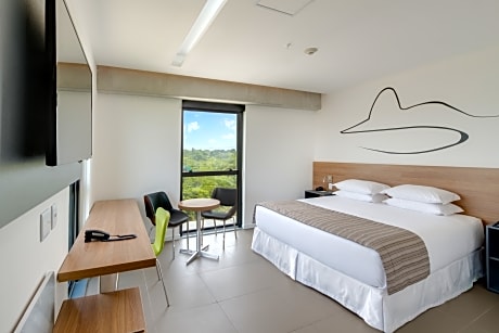 Conveniently located only 1640 ft from Galeão - Tom Jobim International Airport in Rio de Janeiro, Linx Hotel has a 24-hour gym, pool and a bar. It is 9.3 mi from central Rio. Free WiFi is available. The air-conditioned rooms feature a 32" LED TV with cable channels and a mini-bar. The private bathroom includes a hot shower. The daily breakfast buffet offers a variety of fresh fruits, breads and cold meats. Guests can also enjoy regional and international specialties, as well as a selection of drinks in the hotel’s restaurant. Linx Hotel International Airport Galeão also offers 24-hour free shuttle service and screens with flight hours. Guests can also benefit from the Mercato, a grab-and-go service for quick meals and snacks. It is set 11 mi from Maracanã Stadium and 16 mi from Copacabana.
