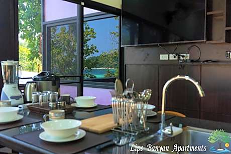 Located in Ko Lipe, within 1.1 mi of Lipe Floating Pontoon and 1.4 mi of Military Camp, Lipe Banyan Apartments offers barbecue facilities. All rooms boast a kitchen and a private bathroom. The accommodations provides room service, and buying tickets for guests. At the hotel, the rooms include a terrace with a garden view. Lipe Banyan Apartments features some units with sea views, and each room includes a balcony. At the accommodations each room is equipped with a seating area. A variety of popular activities are available in the area around the property, including snorkeling and hiking.