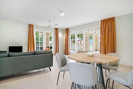 Offering spacious apartments and villas with stunning views of the ocean and lush tropical gardens, this hotel in Curaçao provides the perfect balance of relaxation and adventure. Livingstone Jan Thiel Resort features a large outdoor pool with a separate children’s pool, as well as comfortable poolside cabanas for guests to unwind in style. The front desk can arrange a variety of island experiences. Guests can start their day with a delicious breakfast buffet at the Mondi Jan Thiel Restaurant, and enjoy à la carte lunch and dinner in a vibrant, island-inspired atmosphere. In the evening, unwind with a refreshing cocktail at the Mondi Jan Thiel Bar or relax by the pool while taking in the beautiful tropical surroundings.