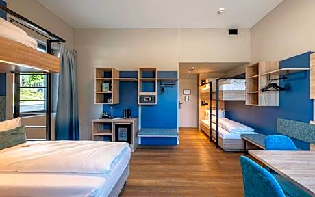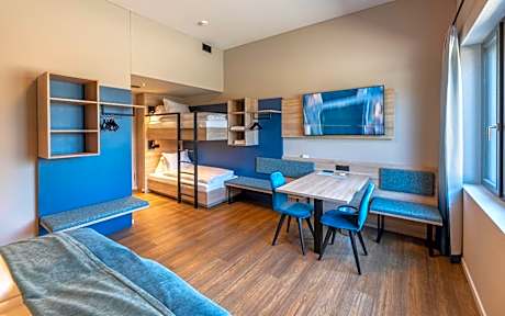 Offering free toiletries, this quadruple room includes a private bathroom with a walk-in shower and a hairdryer. The quadruple room offers soundproof walls, a tea and coffee maker, a seating area, a flat-screen TV with streaming services, as well as mountain views. The unit has 4 beds.