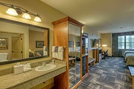Every guest room at The Lodge at Deadwood is a sanctuary of comfort, equipped with flat-screen TVs, iPod docking stations, refrigerators, and inviting decor in warm earth tones. The lodge's on-site casino promises thrills with its 270 slot machines, providing endless entertainment options.