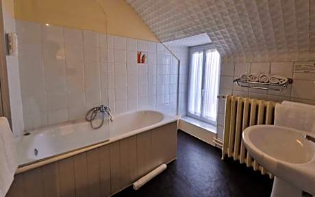Larger room with satellite TV, a desk and a private bathroom with free toiletries and a hairdryer.