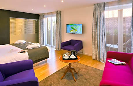 Decorated in a contemporary style, this room features a mini-bar, TV and facilities for making tea and coffee. It is complete with an private bathroom.