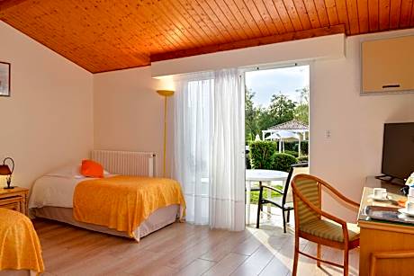 Located in a large garden on the banks of river Vienne, Hotel Val de Vienne is the perfect place for a resting stay in a countryside setting. Hotel Logis de France Val de Vienne welcomes you in a green and peaceful environment. In the summer, the heated swimming pool is the ideal place for a relaxing moment. Hotel Val de Vienne is set in a low building and offers rooms with flat screen TVs, free Wi-Fi and direct access on a private terrace. Located in a region with many Romanesque abbeys, Hotel Val de Vienne offers many leisure activities in its surroundings, such as fishing, hunting and water skiing. Kayaking, ziplining and horse riding are also available in the area. The animal park Vallée des Singes is 25 mi away.