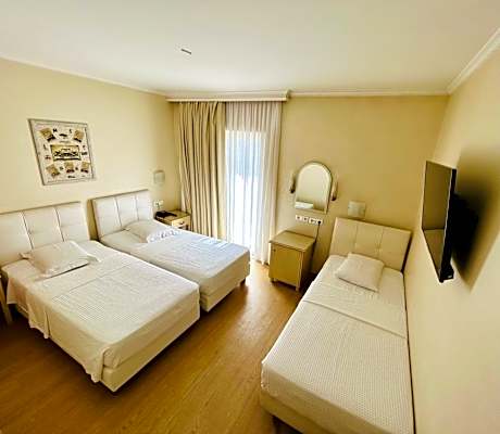 This air-conditioned family room is consisted of of a flat-screen TV with satellite channels, a private bathroom as well as a balcony. The unit has 4 beds.