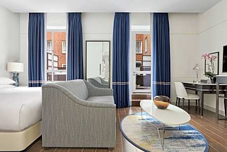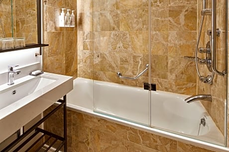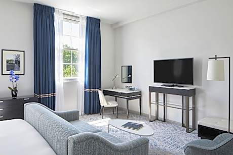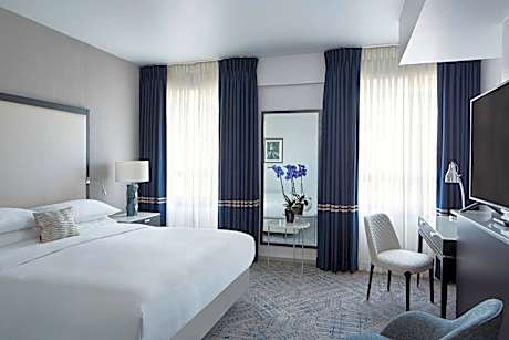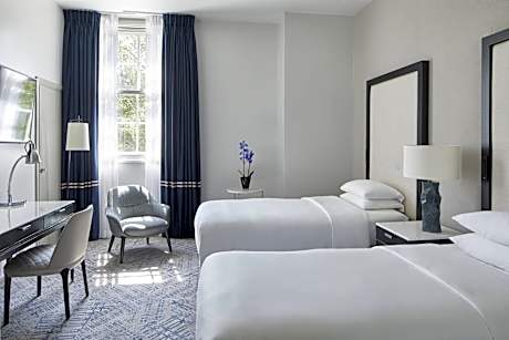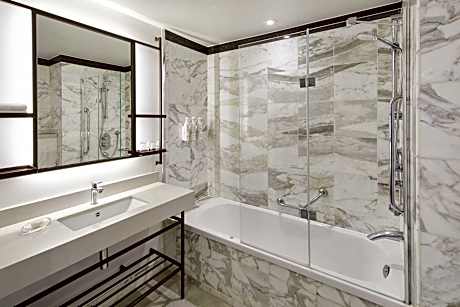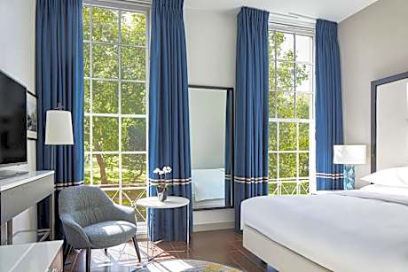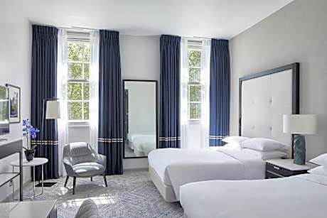This magnificent 5-star hotel offers luxurious air-conditioned rooms in London's West End. Guests can dine at the Gordon Ramsay Bar & Grill, and use the on-site gym. Free WiFi is available in public areas. The London Marriott Hotel Grosvenor Square has a great location in the center of exclusive Mayfair. Park Lane, Hyde Park and the famous shops of Oxford Street are all just 5 minutes’ walk away. Originally built as a stately town house, the hotel’s stylish, modern rooms each feature a 32-inch flat-screen TV and luxury bedding. There are large work desks, and marble bathrooms with fluffy robes. Executive rooms also benefit from access to the executive lounge which offers complimentary snacks and drinks throughout the day. The fine-dining Lucky Cat restaurant serves Pan-Asian and robata grilled cuisine. The Gordon Ramsay Bar & Grill is inspired by iconic American grills and offers a stylish yet informal all-day dining experience. 24-hour room service is also available. Guests at the hotel have free use of the well-equipped fitness center, which includes free weights and cardio equipment.