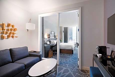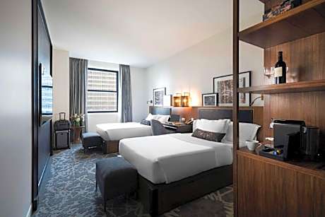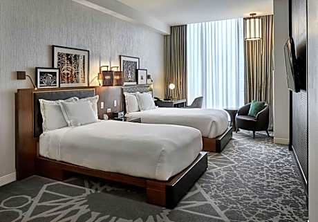 Guests are invited to experience comfort and convenience with a twist of architectural marvel. Each spacious guest room is thoughtfully designed, combining modern amenities with awe-inspiring views of the Chicago skyline and historic landmarks. With a keen eye for detail, the accommodations ensure a memorable stay, complete with a 55-inch flat-screen TV and a large workstation, all complemented by complimentary WiFi.