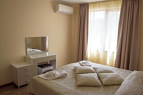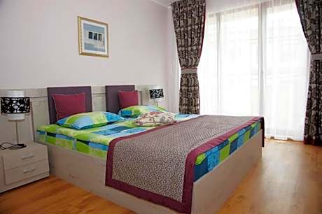 Long Beach Resort offers beachfront apartments with direct access to the Shkorpilovci Beach, as well as outdoor pools with mineral water. The beach zone to the complex has parasols and sunbeds which can be used by the guests of the Long Beach Resort for an additional charge. Free WiFi is available within the complex and at the beach area. A fitness center is also at guests' disposal. All apartments are individually decorated and differ from each other. They have a living room with a sofa bed and dining table, offer independent air-conditioning, flat-screen TV with satellite channels, free WiFi, a bathroom, and a balcony with a view. Some of the apartments have their own kitchenette and a small closet. Guests can enjoy a variety of meals in the restaurant at the Long Beach Resort or a refreshment at the beach bar or pool bar. A children's playground is also available on site. The apartments are surrounded by gardens and are directly located on the coast line of Shkorpilovci, one of the longest beaches of the Bulgarian Black Sea. There is also a windsurf school on the beach. On site free parking is available. The center of Shkorpilovci is 0.6 mi from the accommodations and Varna Airport is reachable within 1 hour by car.