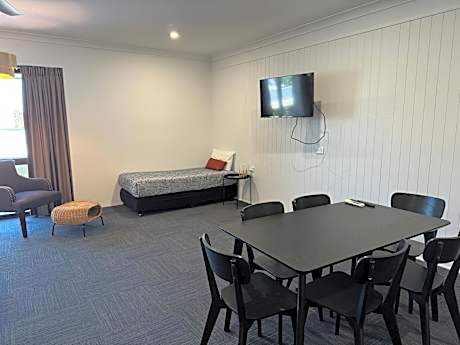 The centrally located Longreach Motor Inn features free WiFi, a swimming pool, a sauna and an onsite restaurant. It features rooms with a flat-screen TV. Enjoy your morning coffee and breakfast at Harry’s Restaurant, which is open daily. Harry's Restaurant & Bar is open each night for dinner, room service is also available. Longreach Motor Inn is located opposite the historic Longreach Railway Station. Longreach Racecourse and Longreach Airport are both less than 5 minutes’ drive away. If you wish to use our free airport shuttle service you MUST contact us to book a pick up in. There is only one trip to and from the airport a day & they book out quickly. Please email or call to book your airport shuttle pick up and drop off. All rooms have undercover parking, are air-conditioned and offer a refrigerator, electric kettle and ironing facilities. Queen Executive Room, Family Two Bedroom Suite, King Room with Balcony and Family Suites all renovated in 2024. Please note, payment by credit card attract a surcharge. We accept AMEX, Visa & Mastercard.