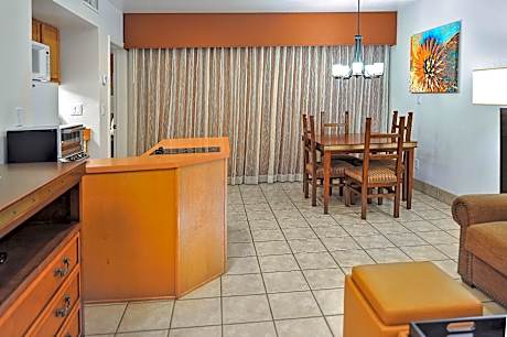 Los Abrigados Resort, located in downtown Sedona, Arizona, features a full-service spa that offers massages and facials. The resort has spacious accommodations with free WiFi. Cable TV, a microwave and a patio feature in rooms at Hilton Vacation Club Los Abrigados Resort & Spa Sedona. Select units offer 2 TVs and a full kitchen with a dishwasher. Stakes & Sticks Bar and Grill is open for lunch and dinner, serving cocktails and displaying horse races on big-screen TVs. Guests of Los Abrigados Resort can work out in the fitness center or use the tennis and basketball courts. The resort has 2 outdoor pools and offers additional relaxation in the hot tub or sauna. Red Rock State Park, providing hiking trails and picnic tables, is 6.2 mi from Los Abrigados. Sedona Airport is a 7-minute drive from the resort.