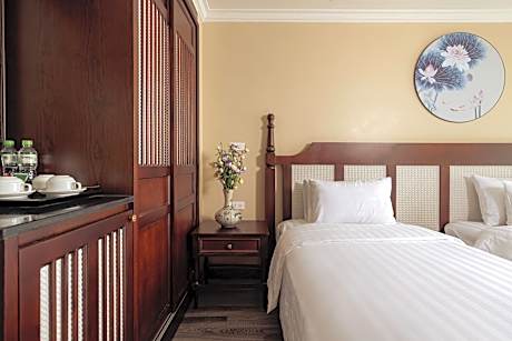 At Lotusama Hanoi Hotel, exceptional service and top-notch amenities create a memorable experience for guests. Complimentary internet access is available in the hotel to ensure you stay connected during your visit. Arrange your trips to and from the airport using the hotel's convenient transportation services booking. Discover the wonders of Hanoi with ease by utilizing the services provided by taxi, car hire and shuttle.For guests with their own vehicle, parking facilities are provided.Continuously receive the support you require through front desk amenities such as concierge service, express check-in or check-out, luggage storage and safety deposit boxes. At the hotel, their ticket service and tours is also capable of assisting with booking tickets and securing reservations for entertainment and adventures. Chilly nights become more delightful than balmy ones, as you snuggle near the hotel's inviting hearth.Always look your best in your preferred attire with the dry cleaning service and laundry service provided at Lotusama Hanoi Hotel.Craving relaxation? In-room amenities such as 24-hour room service, room service and daily housekeeping allow you to maximize your time spent inside the room.Additionally, you can obtain minor travel essentials and miscellaneous items at the convenience stores without departing from the Lotusama Hanoi Hotel.Due to health concerns, smoking is strictly prohibited within the entire premises of hotel.For the health and well-being of all guests and staff, smoking is restricted exclusively to assigned zones.Accommodations come equipped with all the conveniences required for a restful night's slumber.A selection of rooms feature linen service, blackout curtains and air conditioning to ensure your comfort and convenience.A few accommodations at Lotusama Hanoi Hotel also include unique design elements like a balcony or terrace. A few chosen rooms are equipped with television and cable TV to ensure guest amusement.In certain rooms, the hotel offers visitors access to a refrigerator, bottled water, instant coffee, instant tea and mini bar. In the hotel, certain guest bathrooms come equipped with essential bathroom amenities, such as a hair dryer, toiletries and bathrobes, ensuring a comfortable stay for guests. A delightful breakfast is the perfect way to begin your day, and at Lotusama Hanoi Hotel, you can always indulge in a scrumptious meal on-site.Allow your journey to be free from the pangs of hunger! On-site eateries offer delicious and accessible meal choices. At Lotusama Hanoi Hotel, experience the ease of having groceries brought straight to your accommodation through their efficient service.At Lotusama Hanoi Hotel, guests can take pleasure in the delightful recreational amenities provided for their entertainment. Conclude your days in complete tranquility by visiting the massage situated precisely at the hotel.