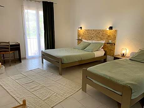 This air-conditioned triple room features a desk, an outdoor dining area, garden views and a private bathroom. The unit offers 2 beds.