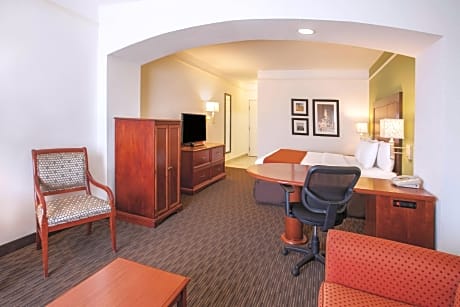 LQ Hotel by La Quinta Cd Juarez Near US Consulate is just over 0.6 mi from the US Consulate, in one of the city’s safest areas. The hotel offers a free shuttle within a 6.2 mi radius. The hotel offers free drop-off at CJS Airport. The hotel has 24-hour security, secure parking and controlled access. The hotel has a modern fitness center, and a refreshing outdoor pool and hot tub. Nearby attractions include the Misiones Shopping Center, the largest in Juárez. The rooms and suites in LQ Hotel by La Quinta Cd Juarez Near US Consulate all have a microwave, free WiFi and a coffee maker. All have flat-screen cable TV. The Mexican-style breakfast includes ham, eggs, chilaquiles, burritos and quesadillas, as well as fresh waffles. You can order lunch or dinner from over 20 restaurants, who will deliver to your room.