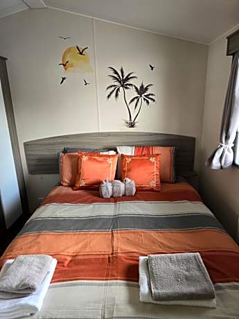 This mobile home consists of 1 living room, 3 separate bedrooms and 2 bathrooms with a walk-in shower. In the fully equipped kitchen, guests will find a stovetop, a refrigerator, kitchenware and an oven. Featuring a terrace with lake views, this mobile home also provides a seating area and a flat-screen TV with streaming services. The unit offers 6 beds.