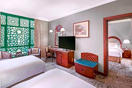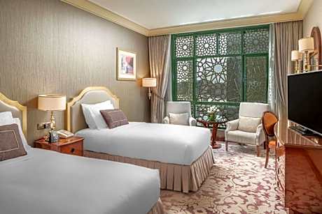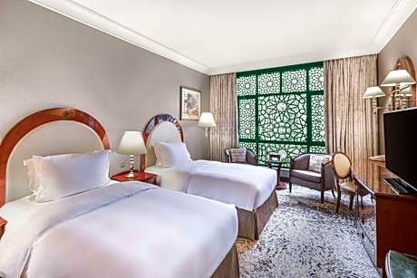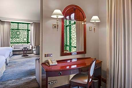 Madinah Hilton offers top-notch services and amenities, ensuring guests experience utmost comfort. Share your photos and respond to emails at your convenience, thanks to the free Wi-Fi internet access offered by hotel. Should you require transportation to or from the airport, hotel is able to organize it prior to your arrival date. Taxi and car hire offerings at the hotel simplify arranging your excursions, explorations, and additional activities in Medina.Visitors can take advantage of complimentary parking directly at the hotel.Reception services such as concierge service, luggage storage and safety deposit boxes are available to accommodate your requirements. Securing top-notch tickets and snagging sought-after dining reservations become effortless, thanks to the hotel's ticket service and tours. Traveling with minimal baggage is achievable at Madinah Hilton, as the hotel's laundromat, dry cleaning service and laundry service ensures your garments stay fresh.Room amenities like 24-hour room service, room service and daily housekeeping contribute to making a perfect selection for your stay. The hotel maintains a completely smoke-free zone, providing a breathable atmosphere. Smoking is limited to specified smoking zones. Each accommodation at Madinah Hilton is thoughtfully created and adorned to provide visitors with a comfortable, home-like atmosphere.In certain rooms, the hotel offers linen service, blackout curtains and air conditioning for guest convenience and satisfaction.In select rooms, guests at the hotel can enjoy top-notch in-room entertainment with daily newspaper, television and cable TV available for their convenience. Rest assured, in a few chosen rooms, you will find the convenience of a refrigerator, bottled water, a coffee or tea maker and mini bar at your disposal. Maintain your cleanliness and comfort using a hair dryer, toiletries and bathrobes available in select guest restrooms. Embark on your holiday experience in the most ideal manner. Commence each morning of your visit with an on-site breakfast. Experience the delight of a fresh morning by savoring excellent coffee at the cafe situated within hotel. Should you prefer not to venture out for a meal, the enticing culinary choices at hotel are always available for your satisfaction.No matter your specific dietary needs, rest assured that Madinah Hilton provides an array of halal choices to ensure your dining experience is nothing short of delightful. Experience an unforgettable evening with your fellow travelers just a short distance away, at hotel's bar. Should you be particularly discerning in your dining choices, you will surely appreciate having access to the on-site BBQ facilities provided at this location.