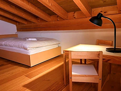 Cozy room located on the top floor of the hotel facing South (with mountain view) or East. The rooms include a TV, radio and a bathroom with shower and toilet.